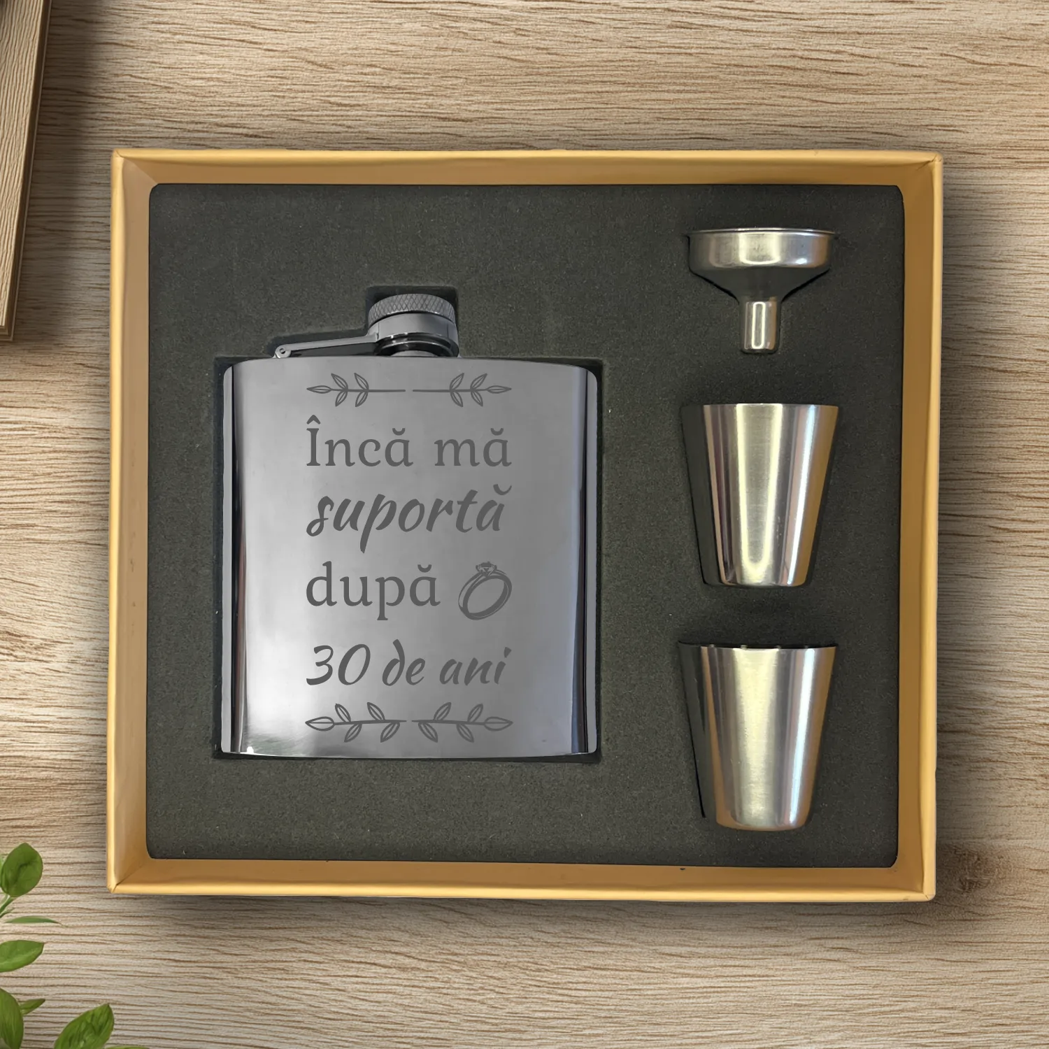 Ploscă de metal personalizată – simplă sau set cu păhărele, Cadou pentru Aniversarea căsătoriei de 30 de ani [ #0504 ]