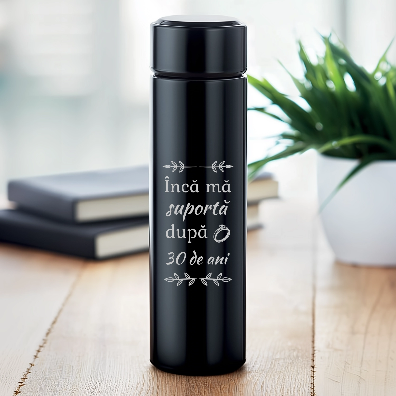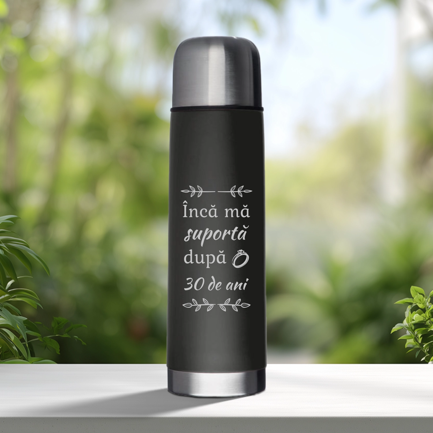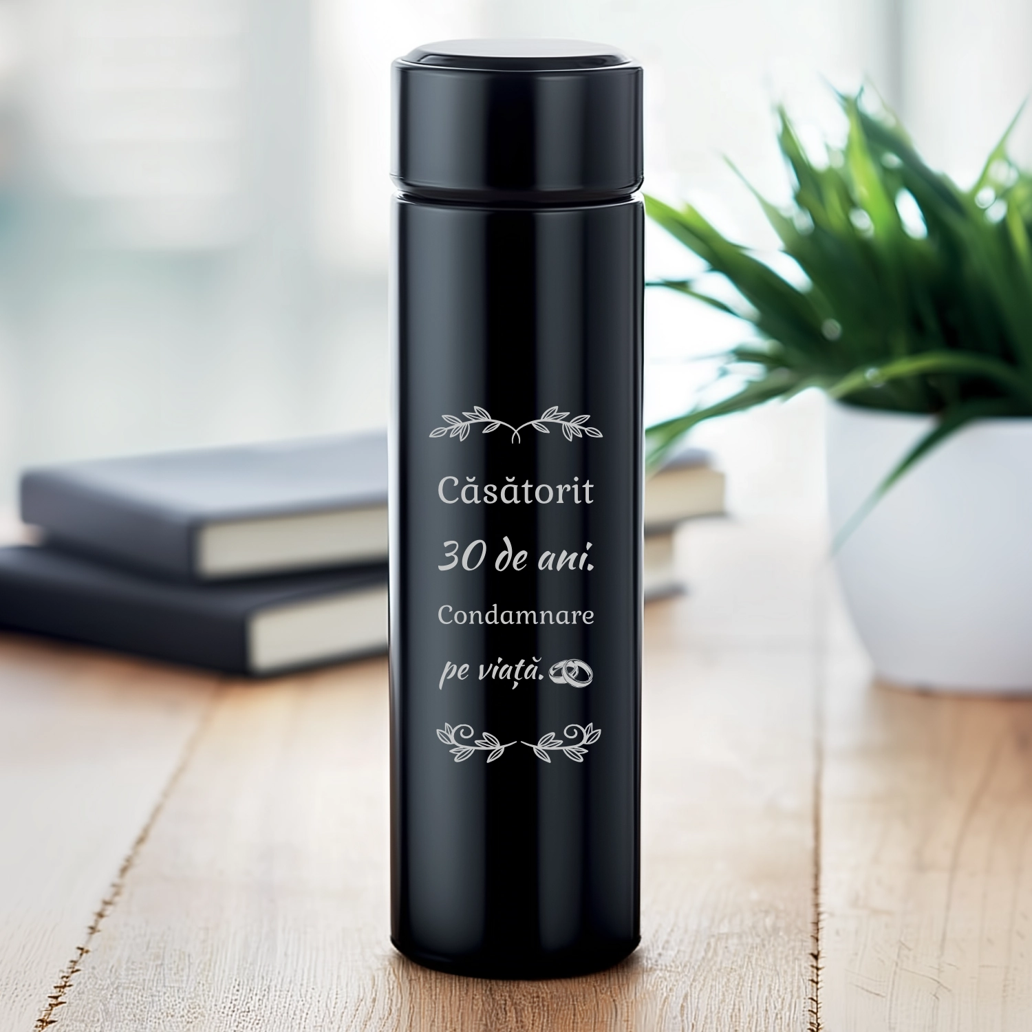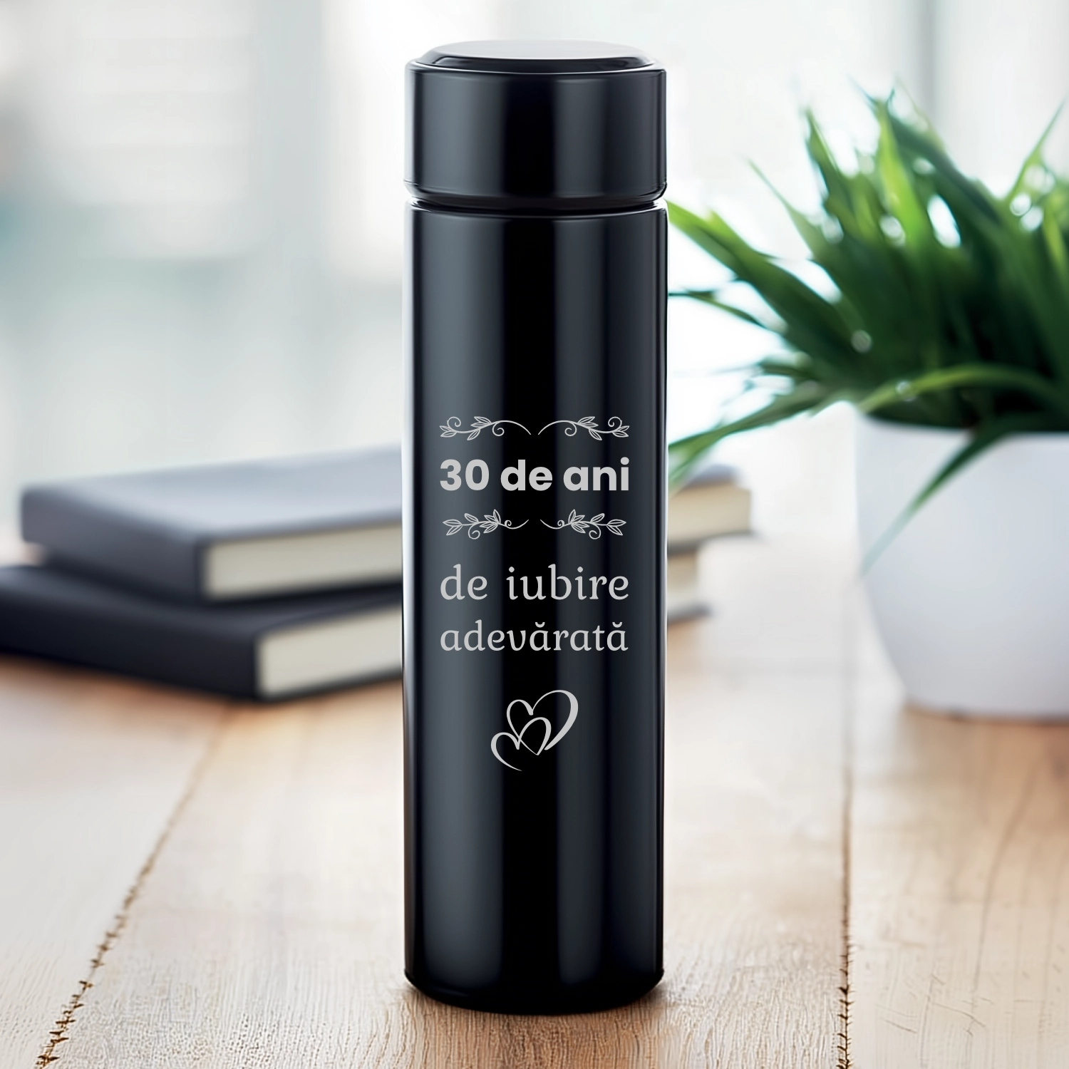 Termos Metalic Negru personalizabil prin imprimare, Aniversarea căsătoriei de 30 de ani [ #0935 ]