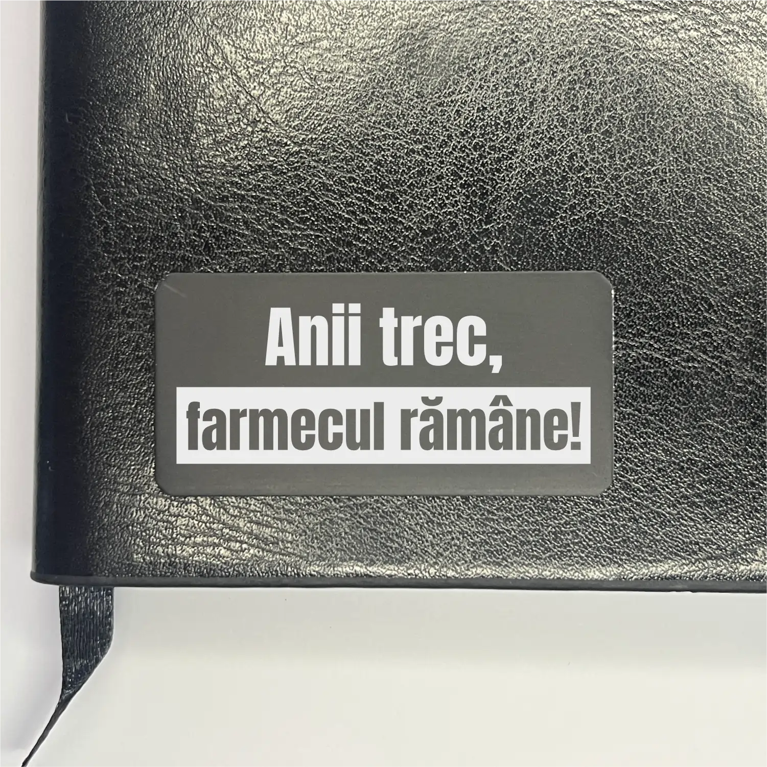 Un cadou elegant și practic, ideal pentru a marca orice aniversare importantă! Agenda din piele, disponibilă în culorile clasic negru sau maro, este personalizată prin gravură laser pe plăcuța metalică din colț, transformând-o într-o amintire unică și rafinată.