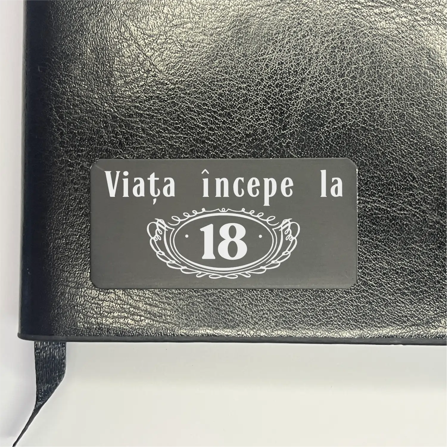 Un cadou elegant și practic, ideal pentru a marca orice aniversare importantă! Agenda din piele, disponibilă în culorile clasic negru sau maro, este personalizată prin gravură laser pe plăcuța metalică din colț, transformând-o într-o amintire unică și rafinată.