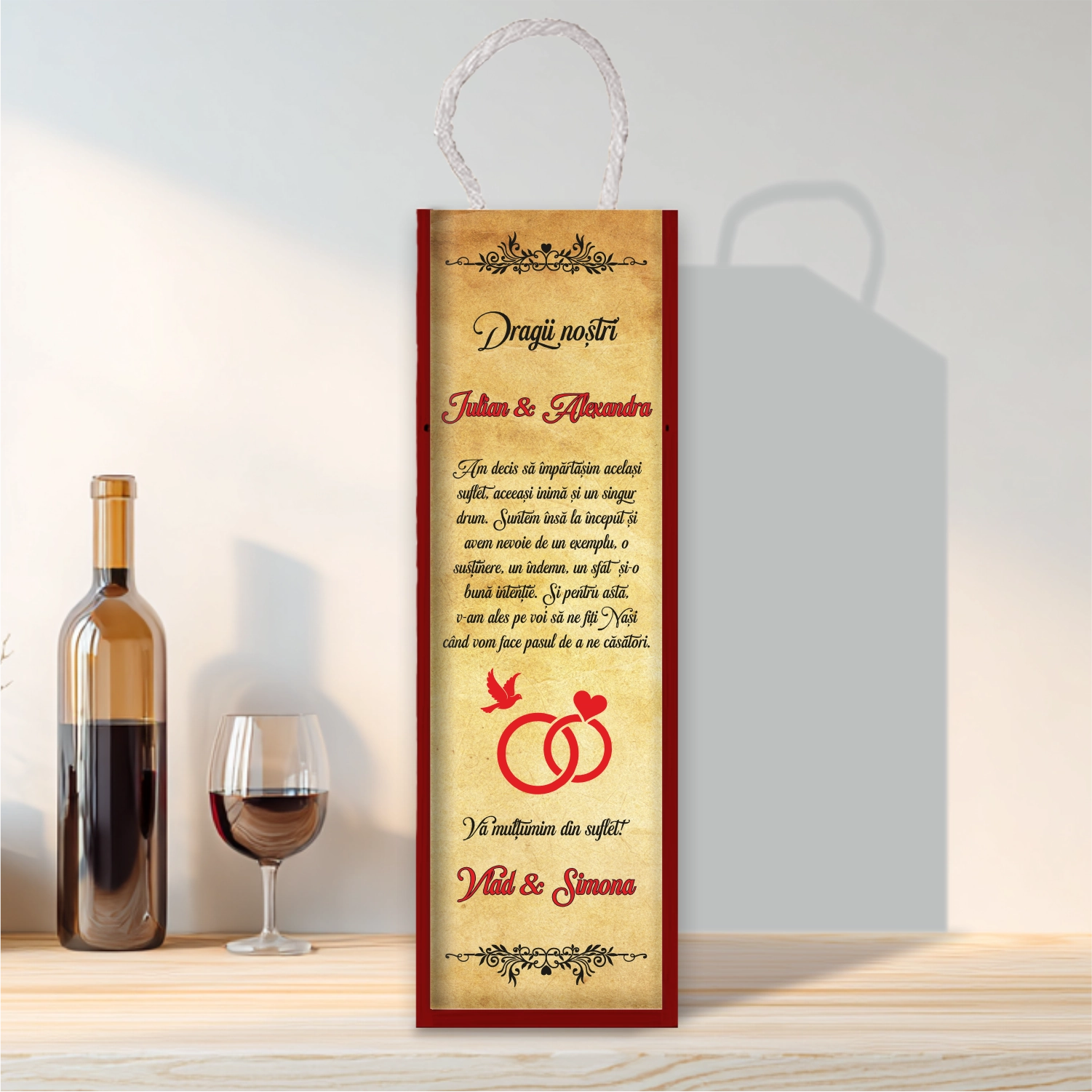 Cutie din lemn sublimată pentru sticla de vin, cu capac culisant, Cererea Nașilor de Nuntă [ #0188 ]