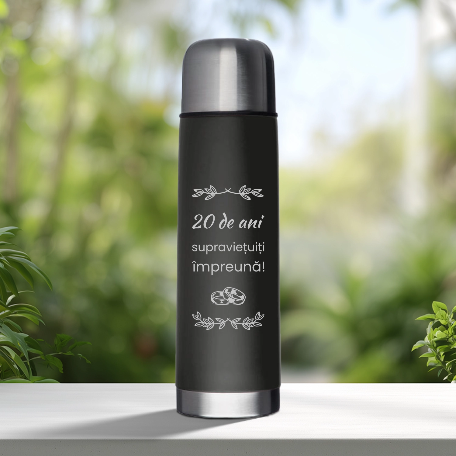 Termos Metalic Negru personalizabil prin imprimare, Aniversarea căsătoriei de 20 de ani [ #0914 ]