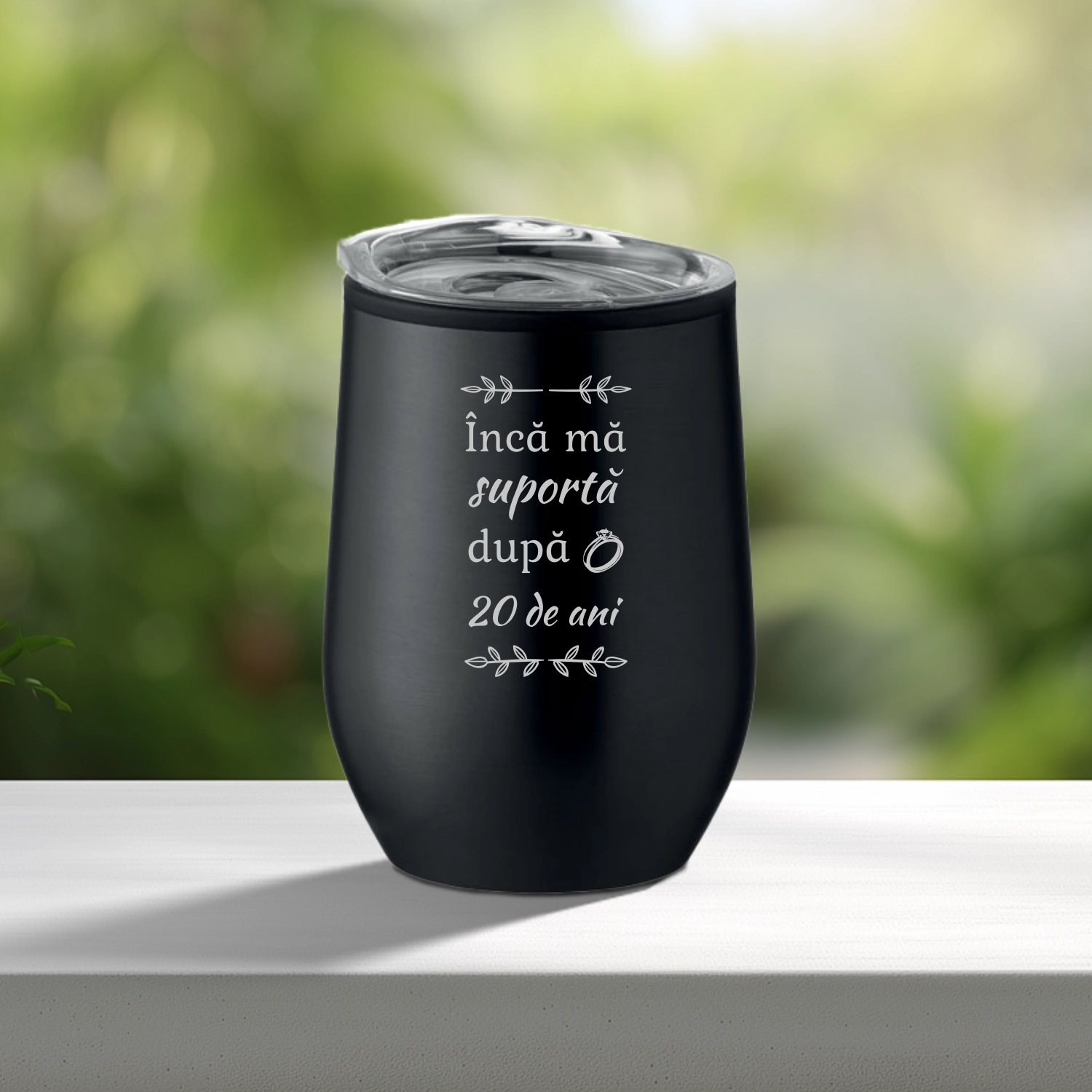 Termos Metalic Negru personalizabil prin imprimare, Aniversarea căsătoriei de 20 de ani [ #0917 ]
