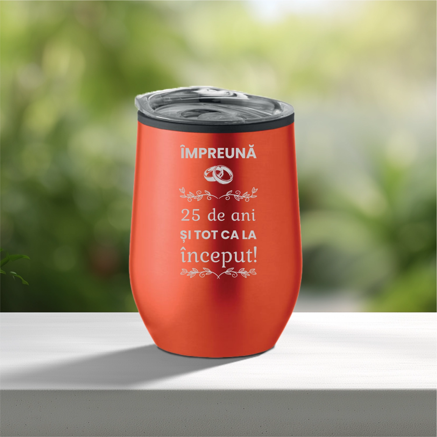 Termos mic personalizabil prin imprimare, Aniversarea căsătoriei de 25 de ani, Nunta de Argint [ #0925 ]