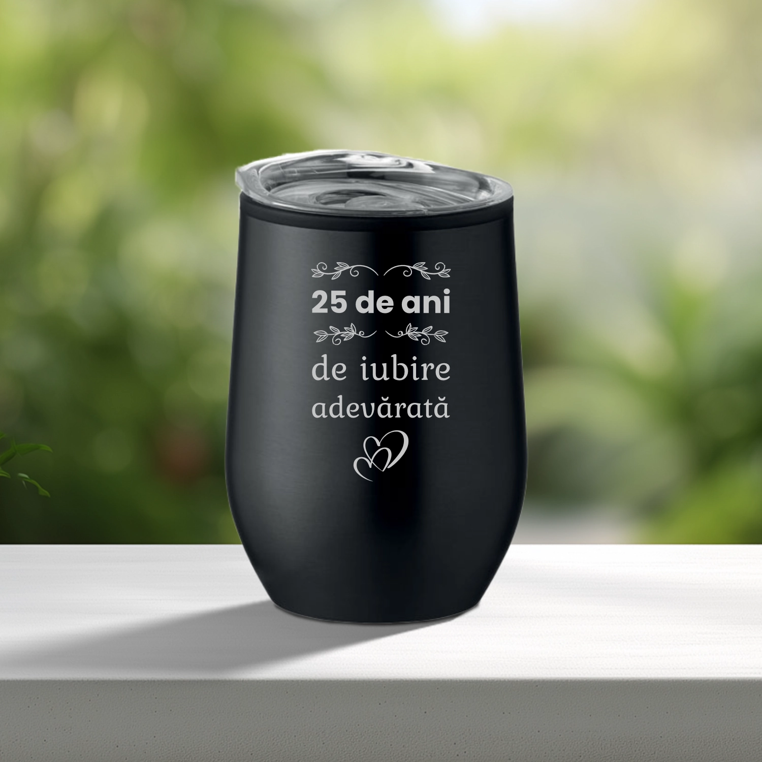 Termos Metalic Negru personalizabil prin imprimare, Aniversarea căsătoriei de 25 de ani, Nunta de Argint [ #0920 ]