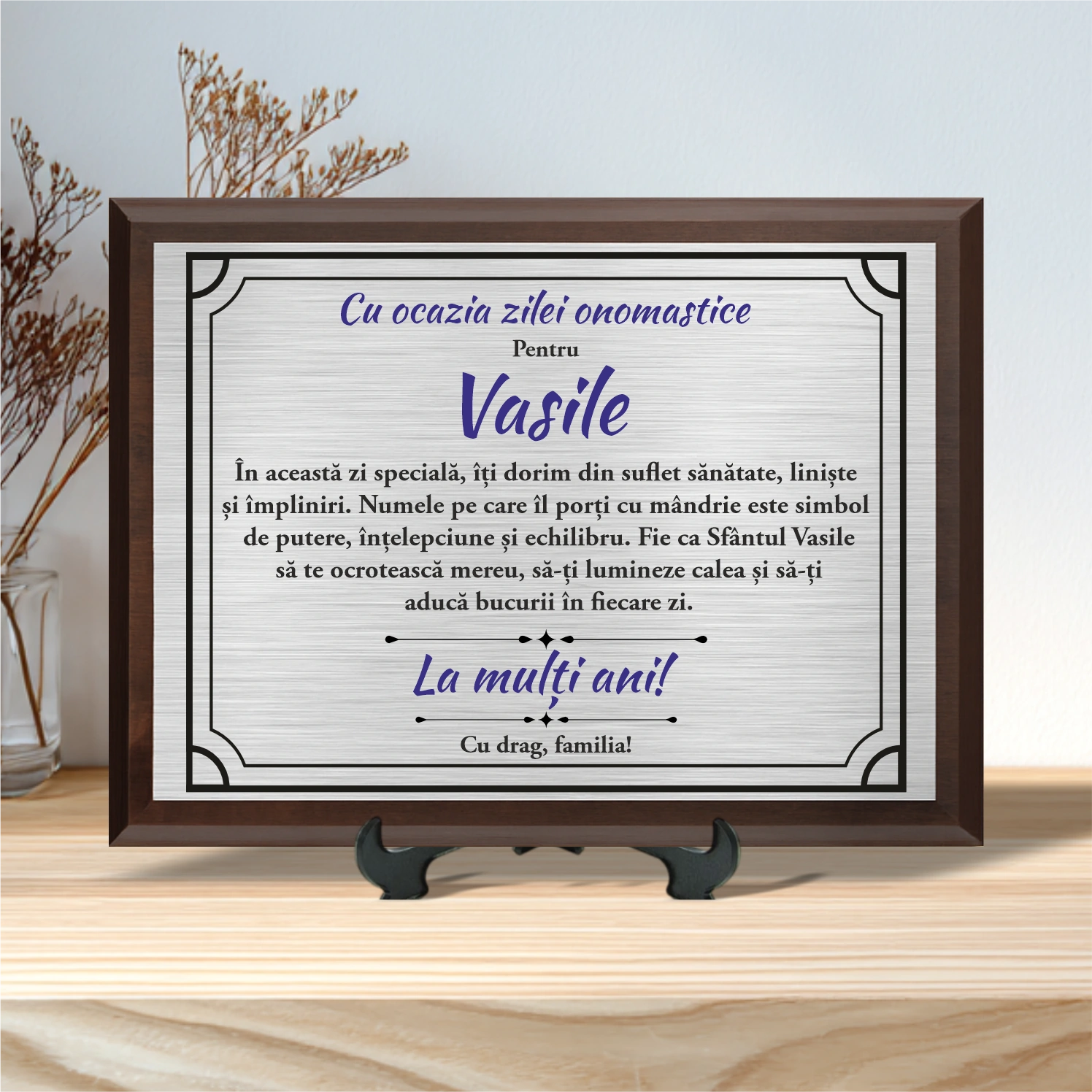 Diplomă personalizabilă imprimată, cu plachetă din lemn, Aniversarea zilei onomastice, Sf. Vasile [ #0021 ]