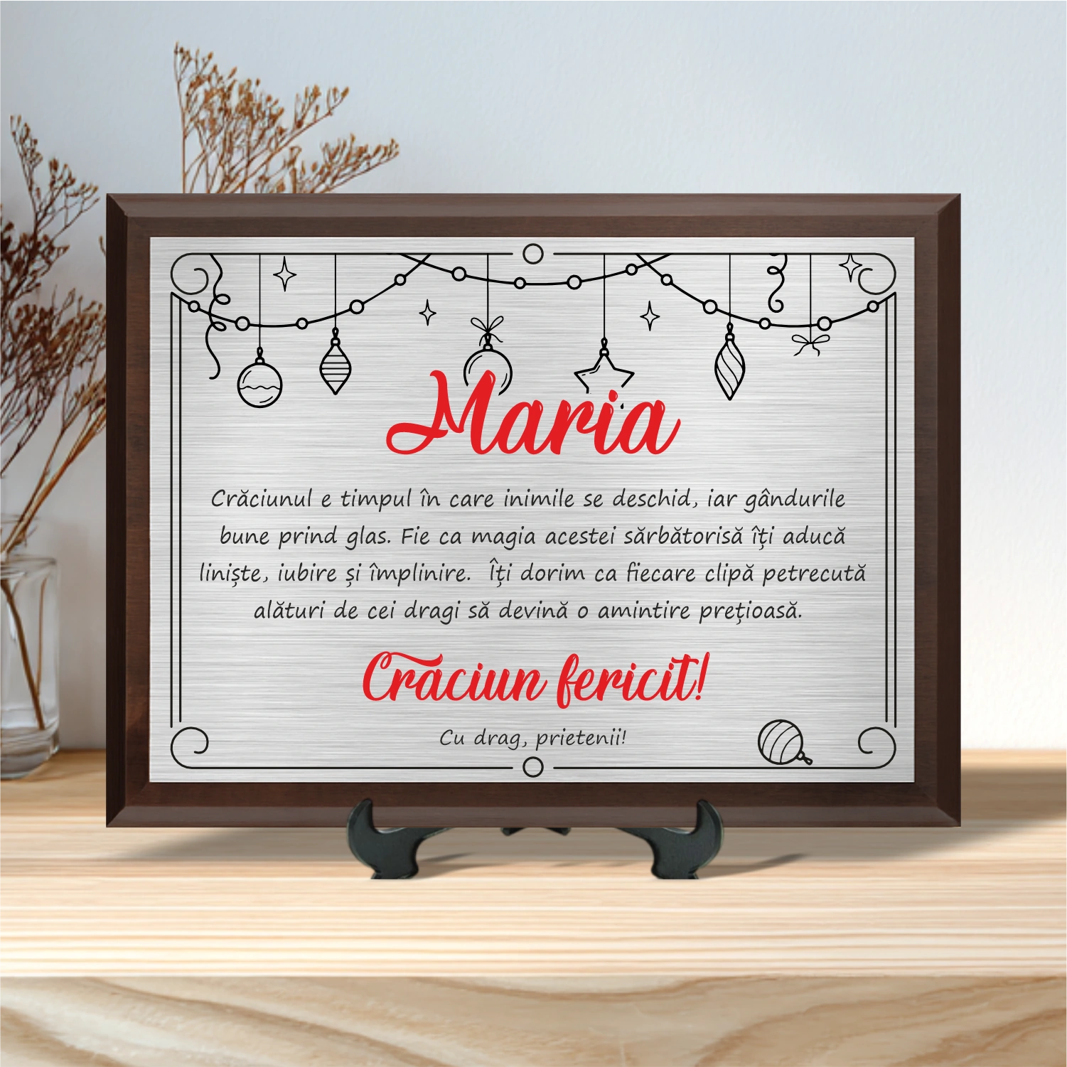 Diplomă personalizabilă imprimată, cu plachetă din lemn, Cadou de Craciun [ #0027 ]